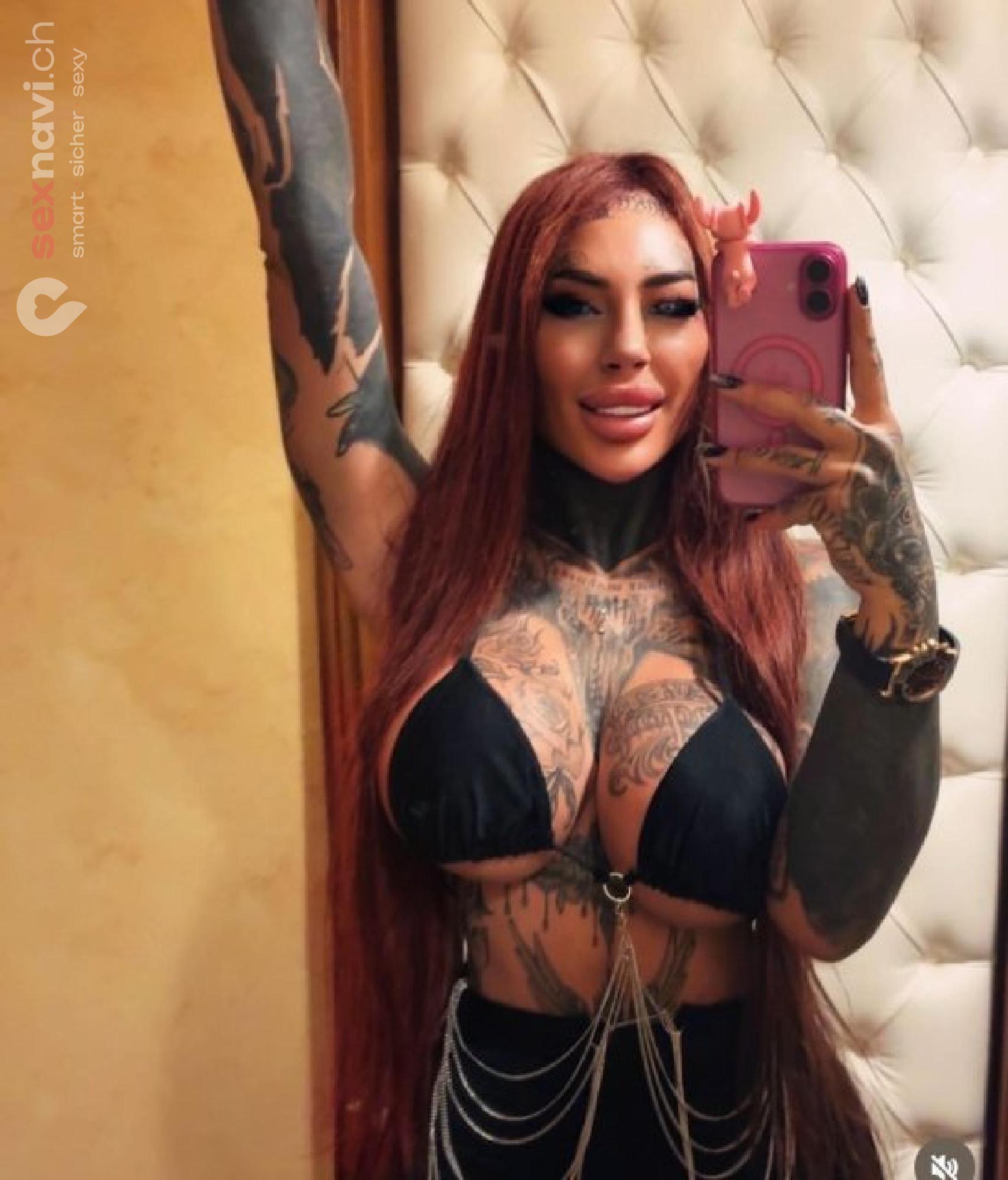 Charlotte ist pure Leidenschaft in rotem Haar. Tätowiert, kurvig, mit Silikon an den richtigen Stellen – sie ist eine Frau, die weiß, wie man Männer verrückt macht. Ihre Blicke brennen, ihre Berührungen lassen dich vergessen, wo du bist. Mit ihr wird jede Minute zum Feuerwerk. Wild, direkt und einfach unvergesslich.